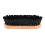 Poetsborstel met houten handvat, leren band en anti-statisch, ionisch haar.